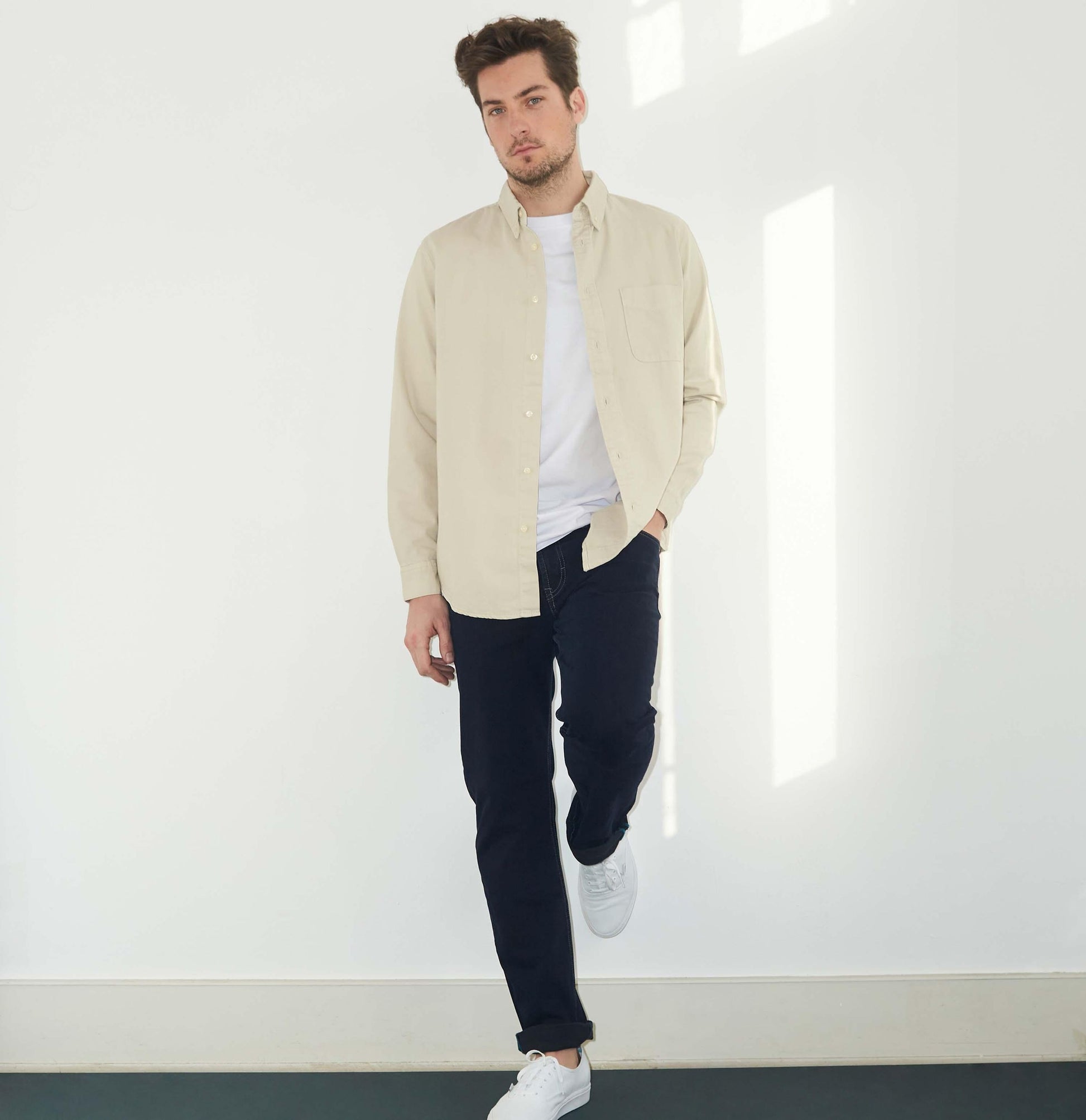 Dieser authentische Denim besticht durch seine maskuline Ringstruktur sowie exzellente Trageeigenschaften. Aufgrund des Elasthananteils verfügt er zudem über ein perfektes Rücksprungverhalten.
